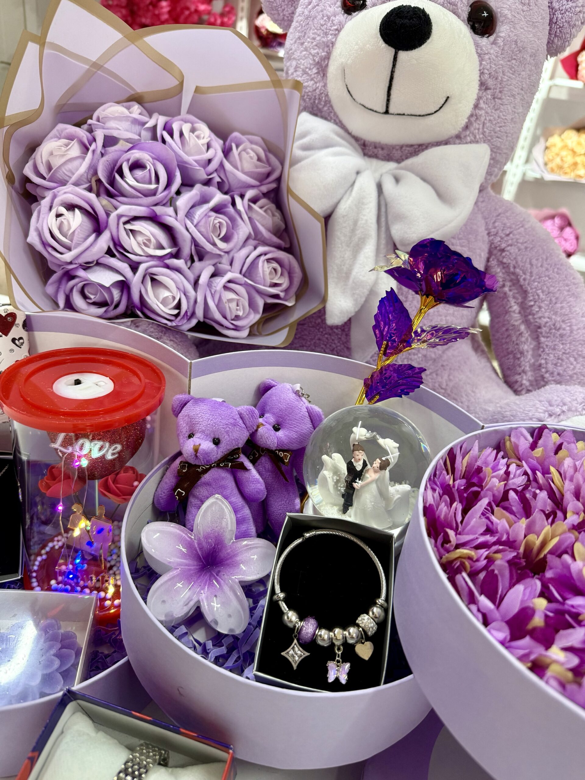 • sevgiliye hediye kutusu, romantik hediye kutusu, sevgililer günü hediyesi, çelik takı setli hediye, ışıklı müzikli kar küresi, peluş ayıcık hediyesi, kadın sevgiliye hediye önerisi, yıldönümüne özel hediye, mor temalı hediye kutusu, sürpriz kutu sevgiliye, sevgililer günü, yılbaşı hediye, peluş ayıcık, yıl dönümü hediye, aşk kutusu, arkadaşa hediye, sevgiliye hediye, anneye hediye, kız kardeşe hediye, kıza hediye, doğum günü hediye, doğum günü, yıldönümü hediye