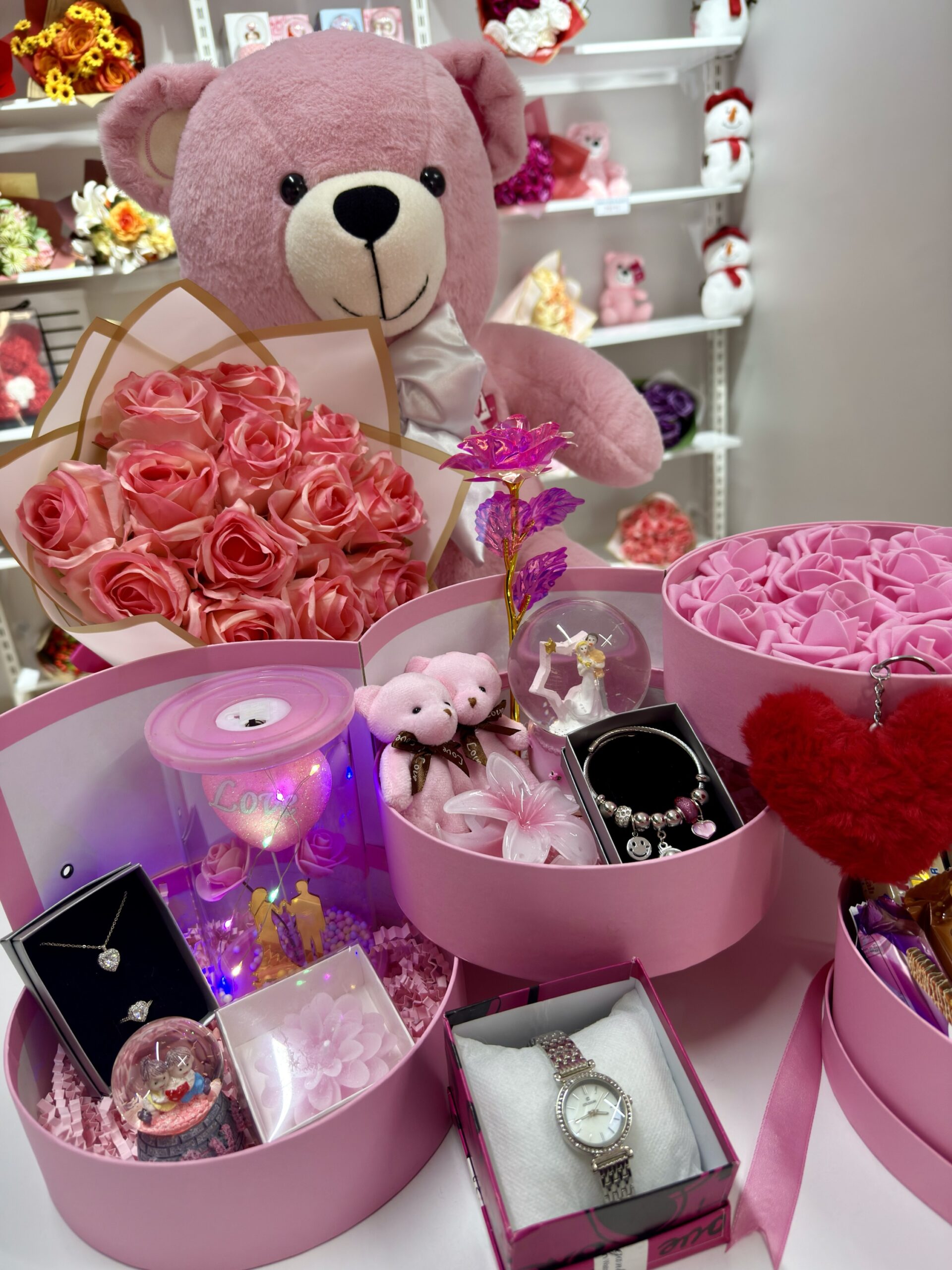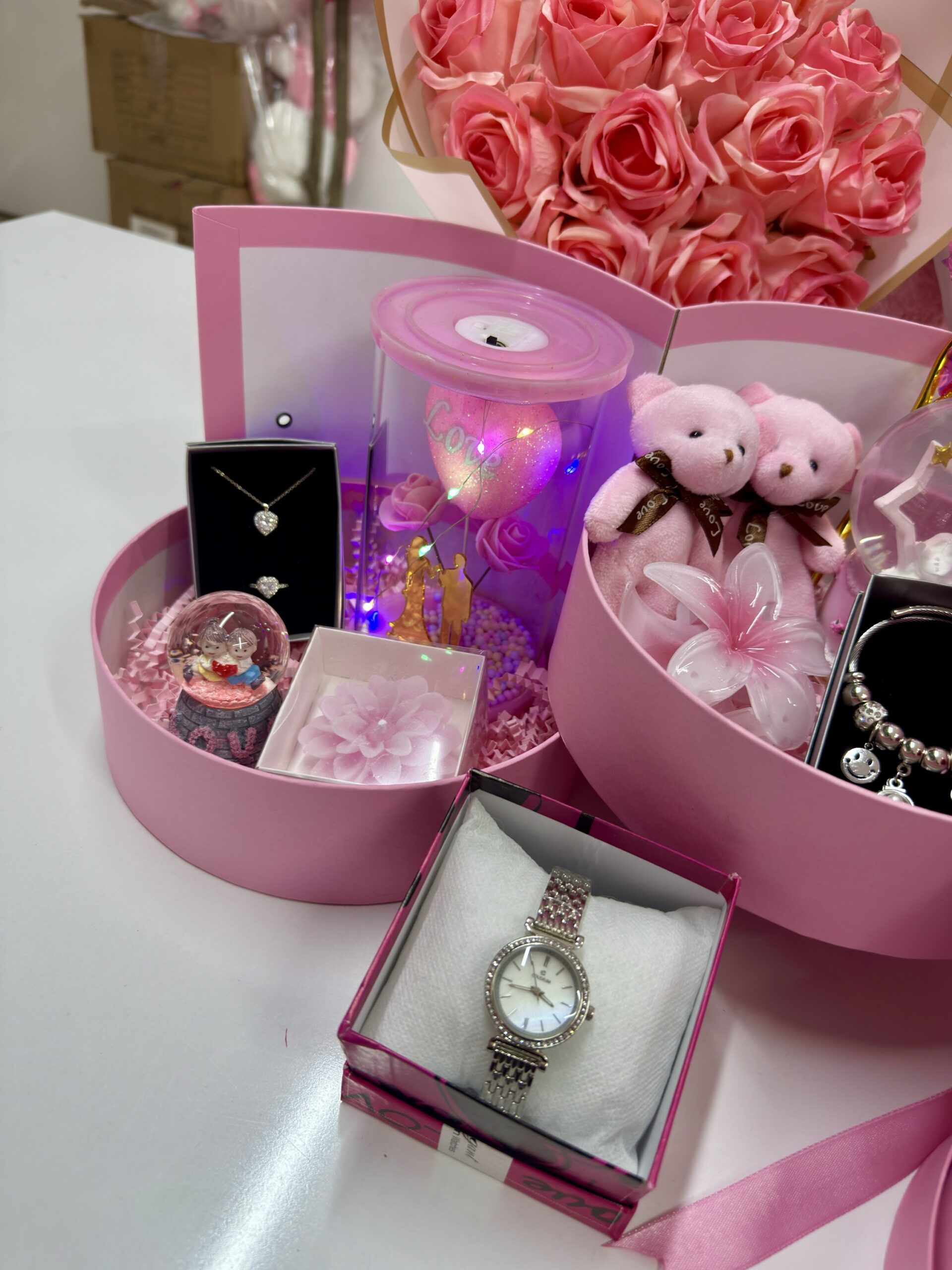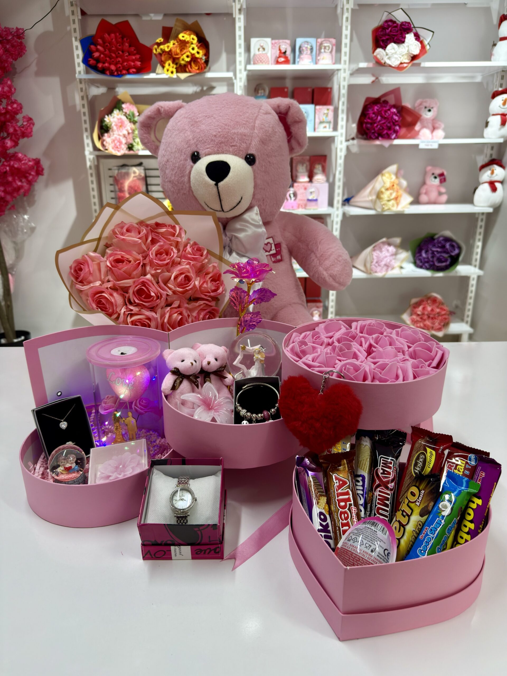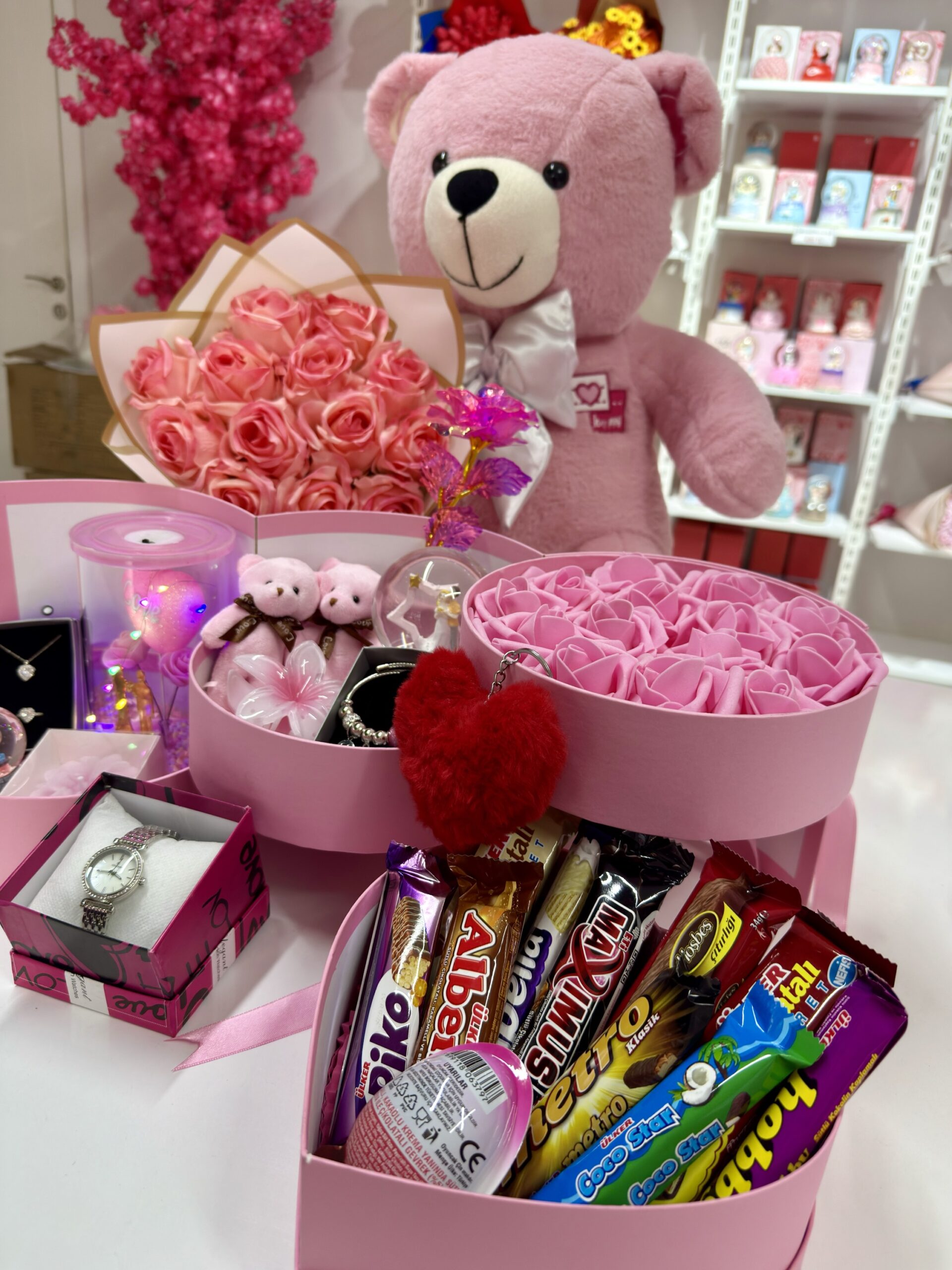 Sevgi ve nezaketin rengi pembeyle tasarlanmış bu romantik kutu, sevdiğinize unutulmaz bir sürpriz sunuyor.
